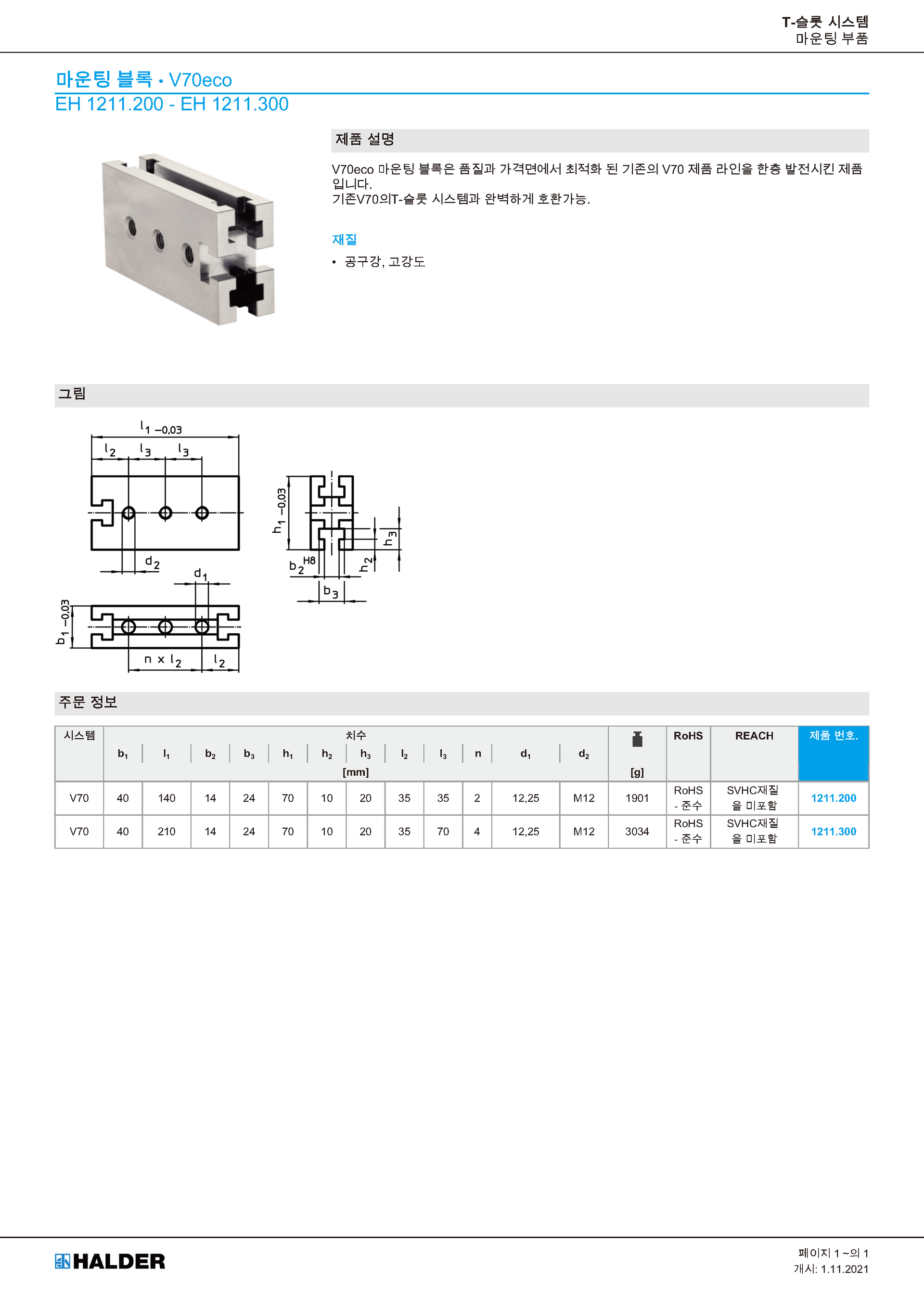 마운팅 블록 V70eco / EH 1211.200 - EH 1211.300
