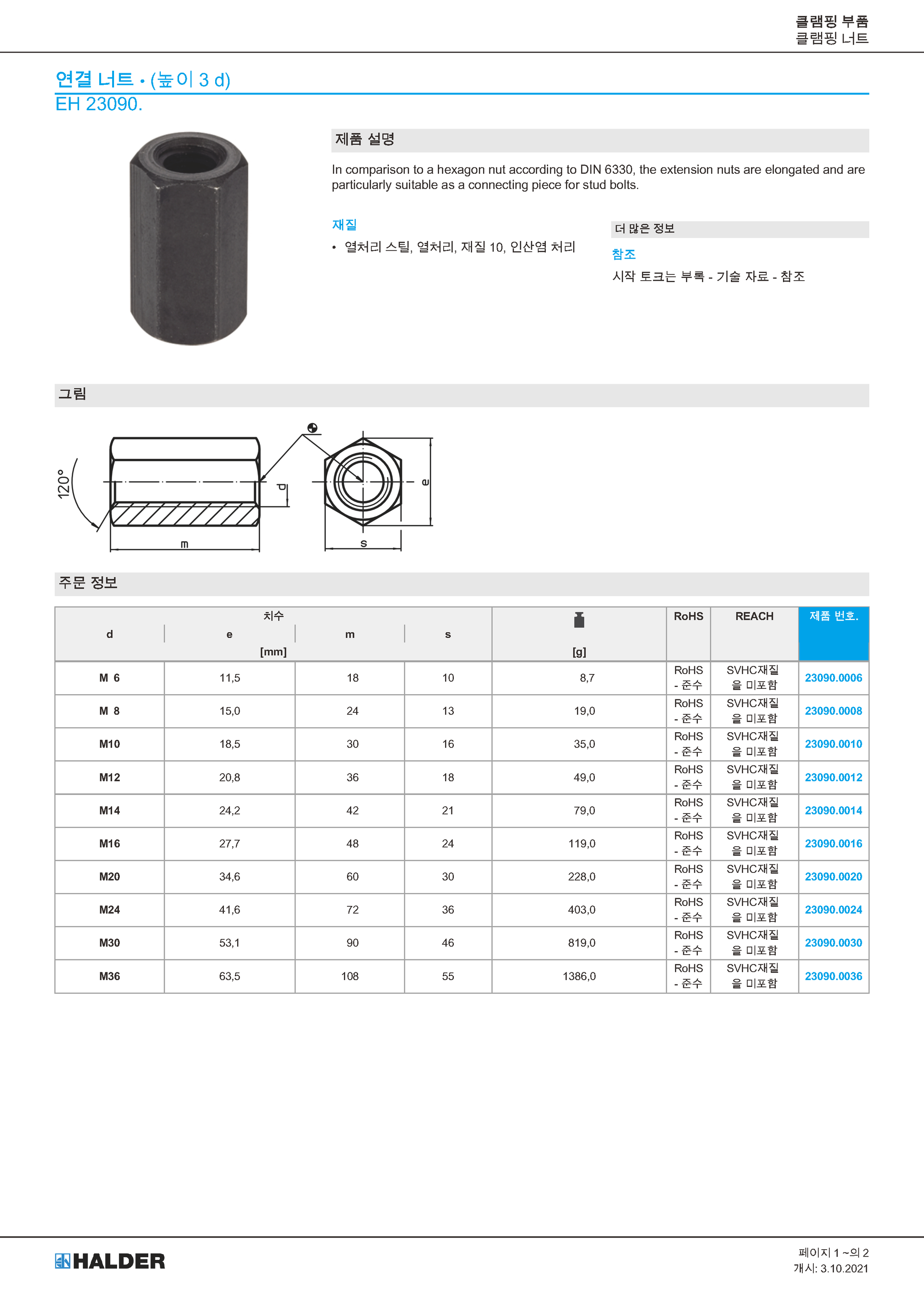 연결 너트 (높이 3 d) / EH 23090.
