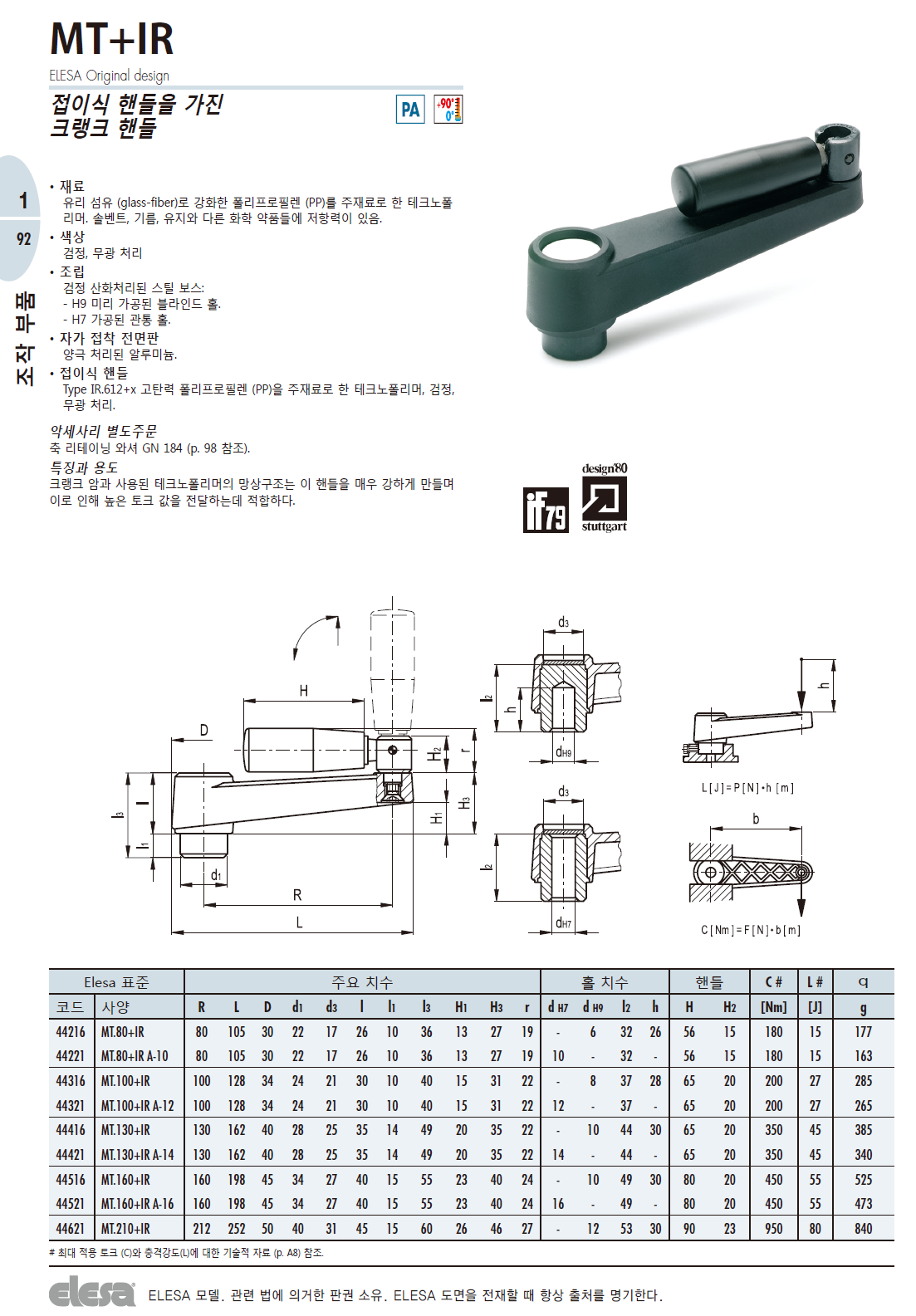MT+IR 크랭크핸들 (접이식핸들, 중식축 홀)