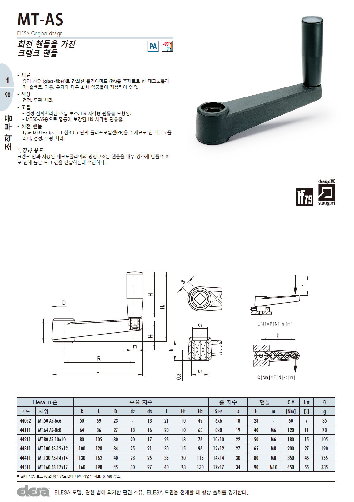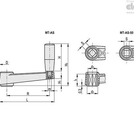 MT-AS 크랭크핸들 (회전핸들, 중식축 사각형 홀)