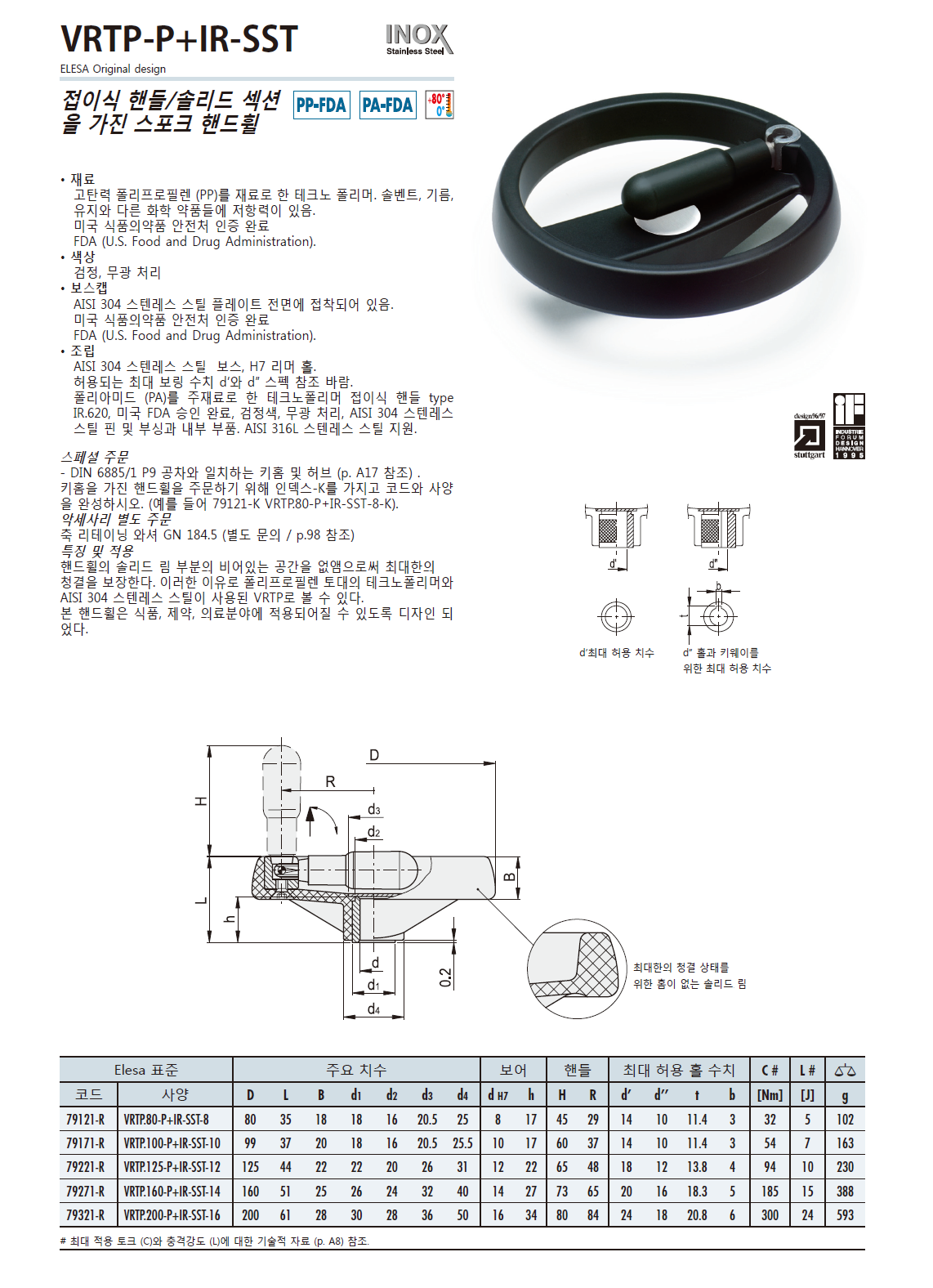 VRTP-P+IR+SST 솔리드 된 단면의 스포크 핸드휠 (접이식핸들)