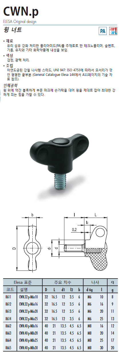 CWN-p 윙너트 (아연스틸 도금 나사산 스터드)