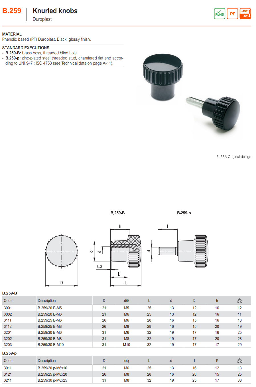 B.259-p 널링 노브 (아연도금 스틸 나사산 스터드)