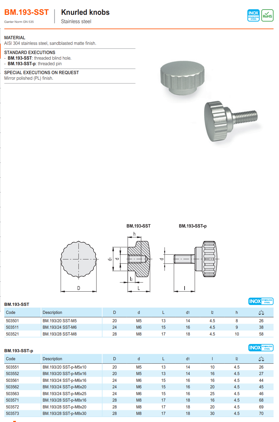 BM.193-SST-p 널링 노브 (나사산 핀)