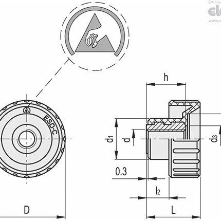 BT-FP-ESD 정전기 억제형 홈이 있는 노브 (황동 보스, 관통형 나사산 홀)