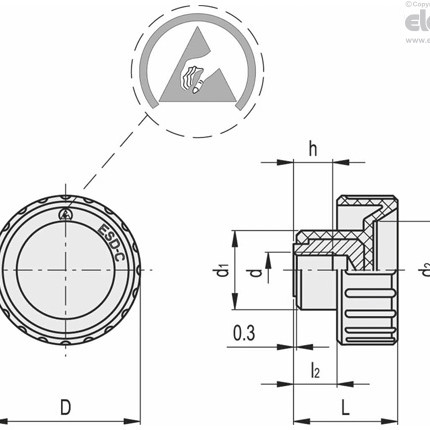 BT-B-ESD 정전기 억제형 홈이 있는 노브 (황동 보스, 나사산 홀)