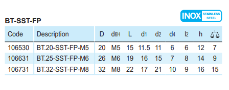 BT-SST-FP 홈이 있는 노브 (스테인리스 보스, 관통형 나사산 홀)