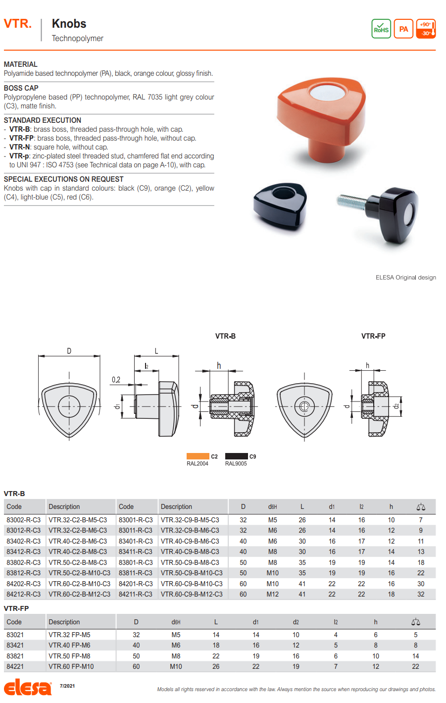 VTR-FP 노브 (관통형 나사산 홀, 캡없음)