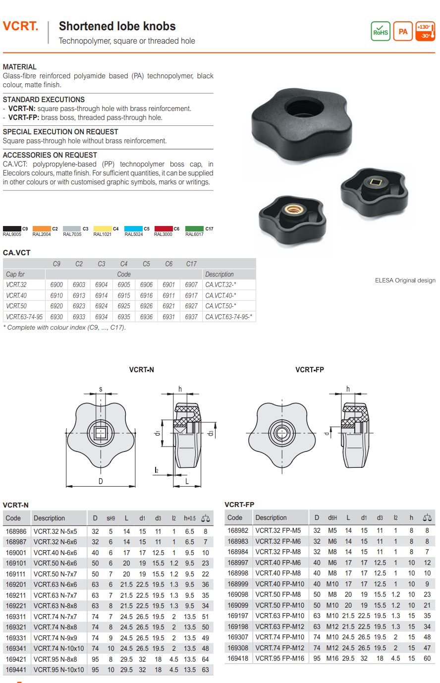 VCRT-FP 로브 노브 (황동 보스, 나사산 홀) / 10개입