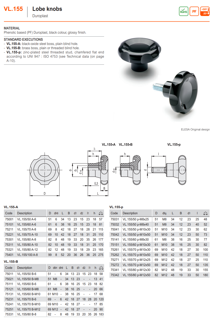 VL.155-A 로브 노브 (스틸 보스, 민자형 홀) / 묶음가격