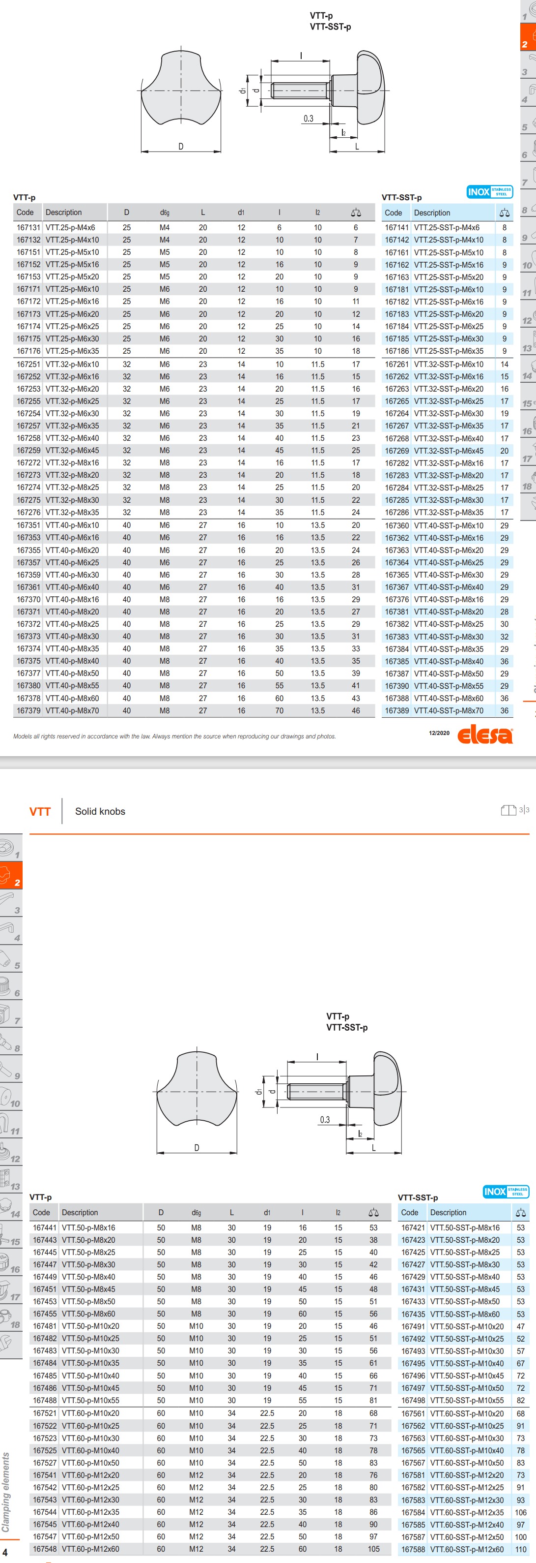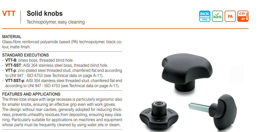 VTT-SST-p 솔리드 된 단면의 로브 노브 (AISI304 스테인리스 나사산 스터드)