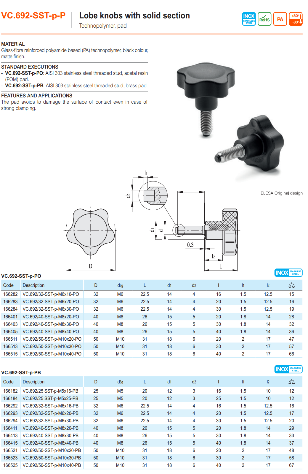 VC.692-SST-p-P 솔리드 된 단면의 로브 노브