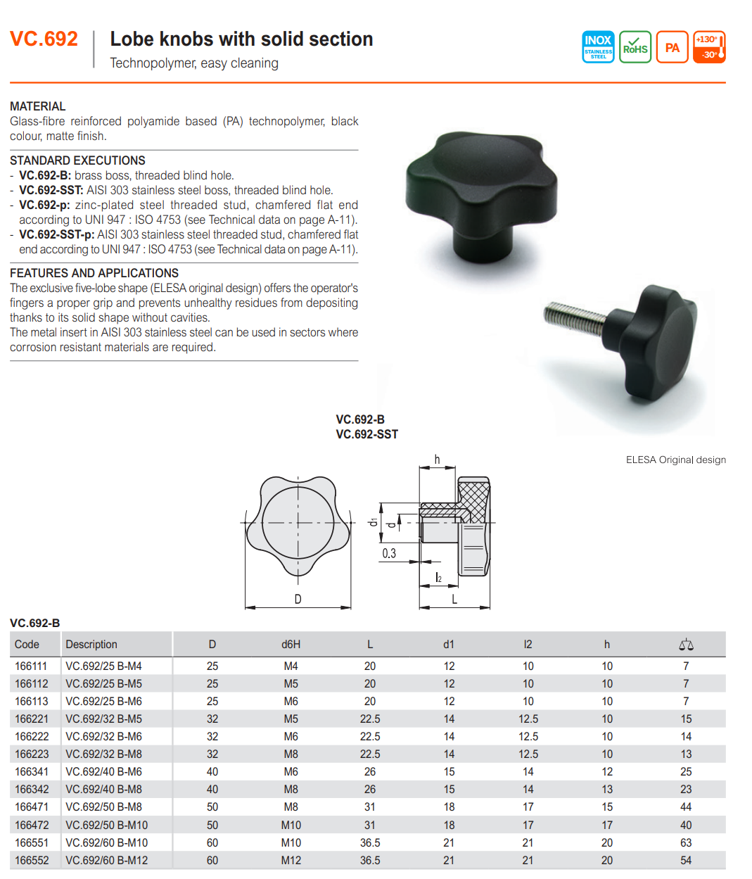 VC.692-B 솔리드 된 단면의 로브 노브 (황동 보스, 나사산 홀)