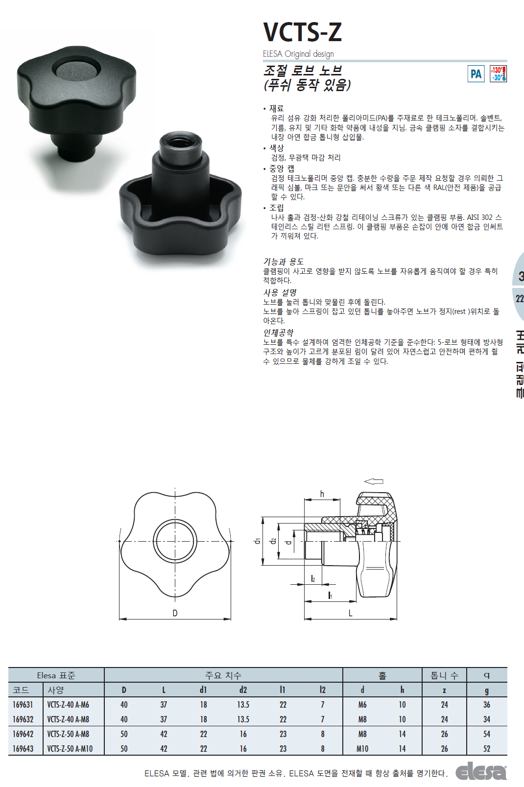 VCTS-Z 안전식 로브 노브 (스틸 나사산 홀)