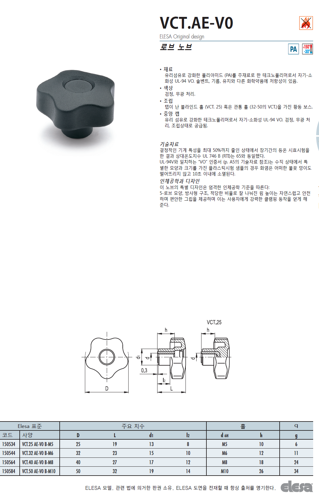 VCT.AE-V0 자기소화 기능 로브 노브