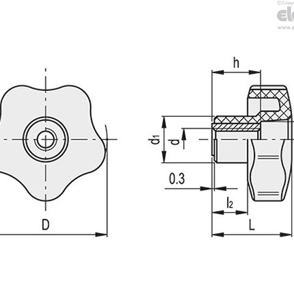 VCT-SST-FP 로브 노브 (스테인리스 보스, 나사산 홀, 캡 없음)