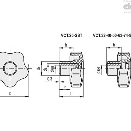 VCT-SST 로브 노브 (스테인리스 보스, 나사산 홀)