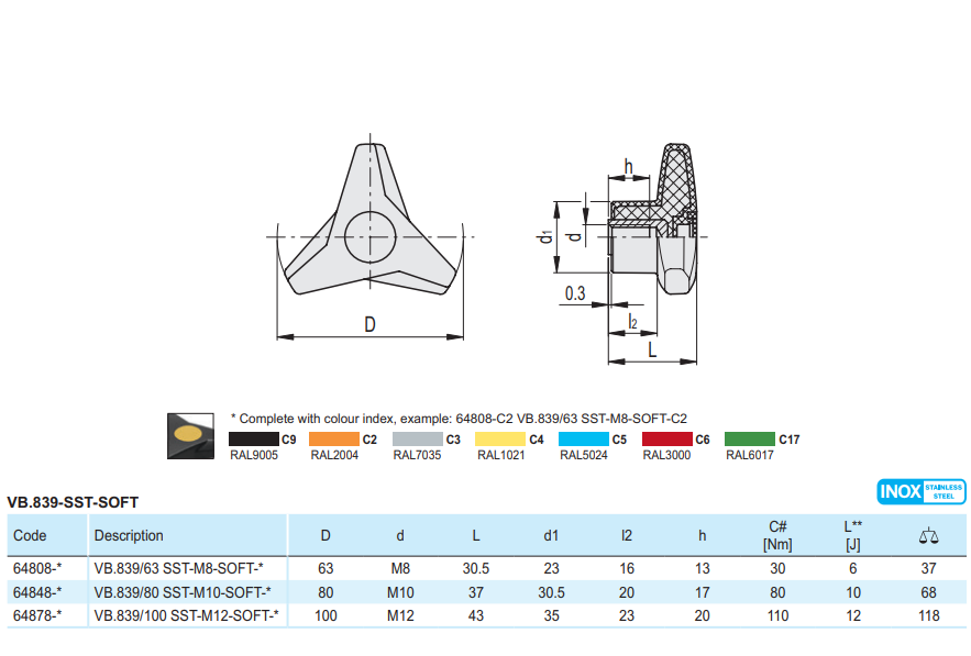 VB.839-SST-SOFT 부드러운 감촉의 삼각 노브 (스테인리스 보스, 나사산 홀)