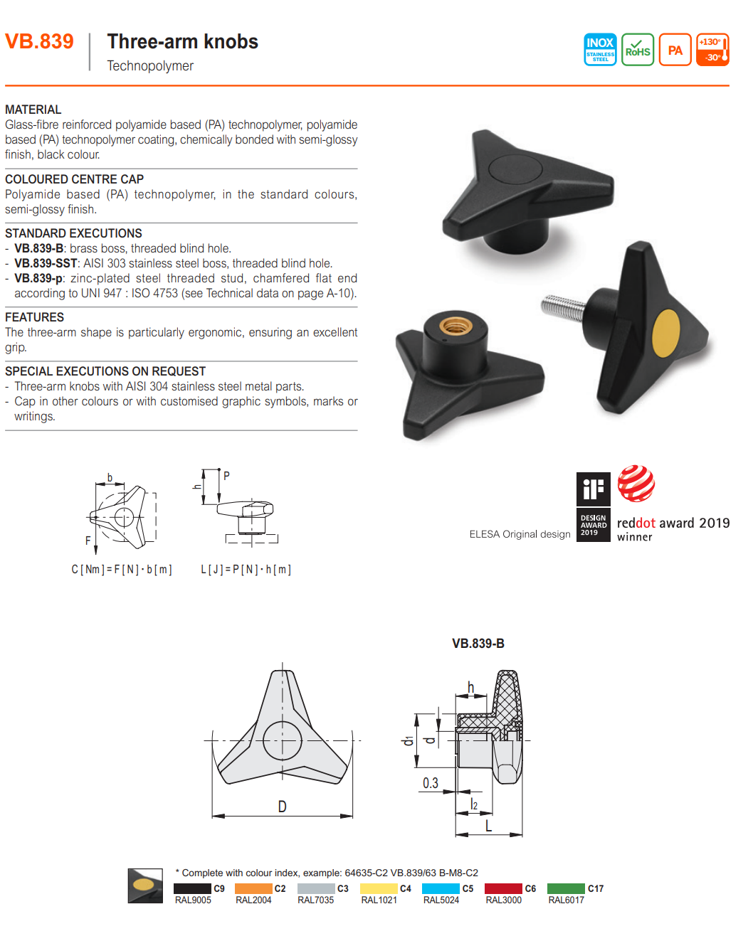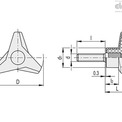 VB.839-P 삼각 노브 (아연도금 스틸 나사산 스터드)