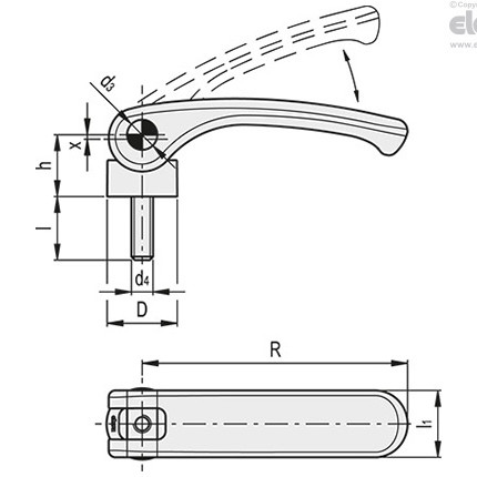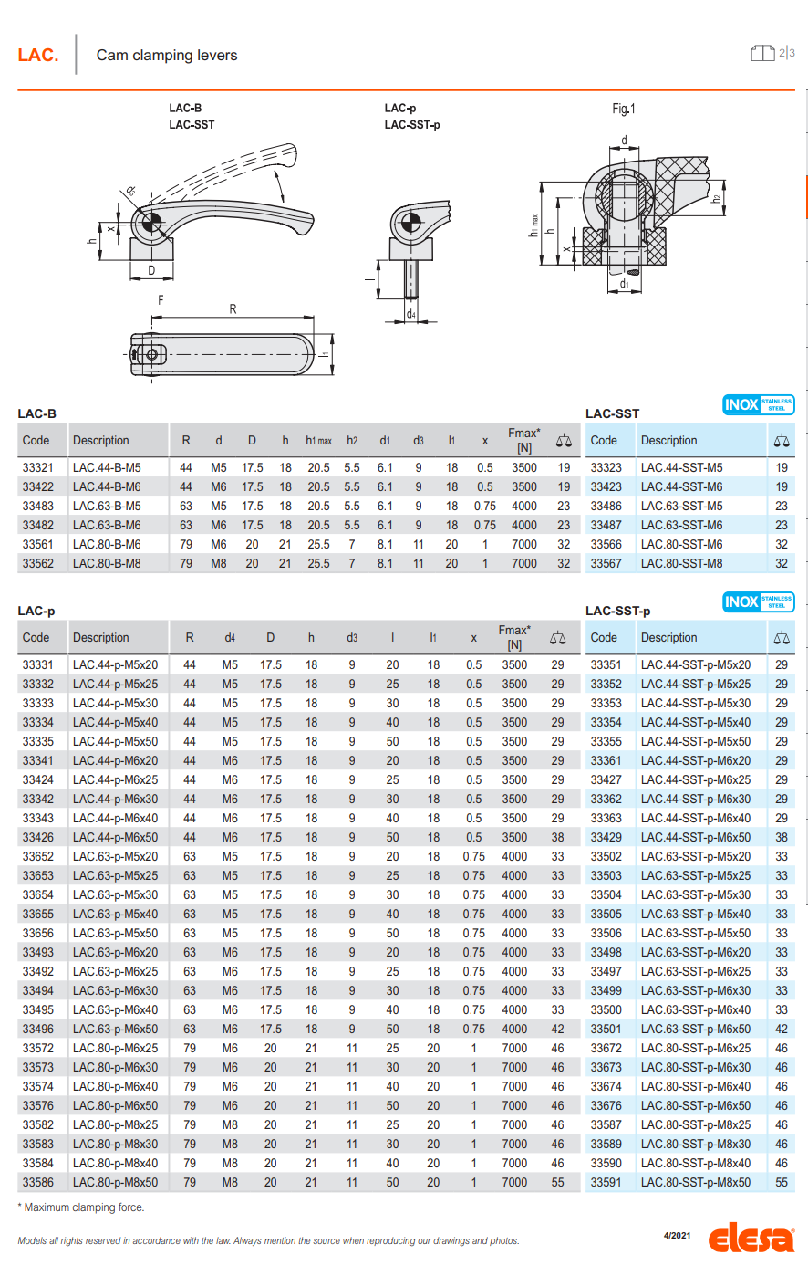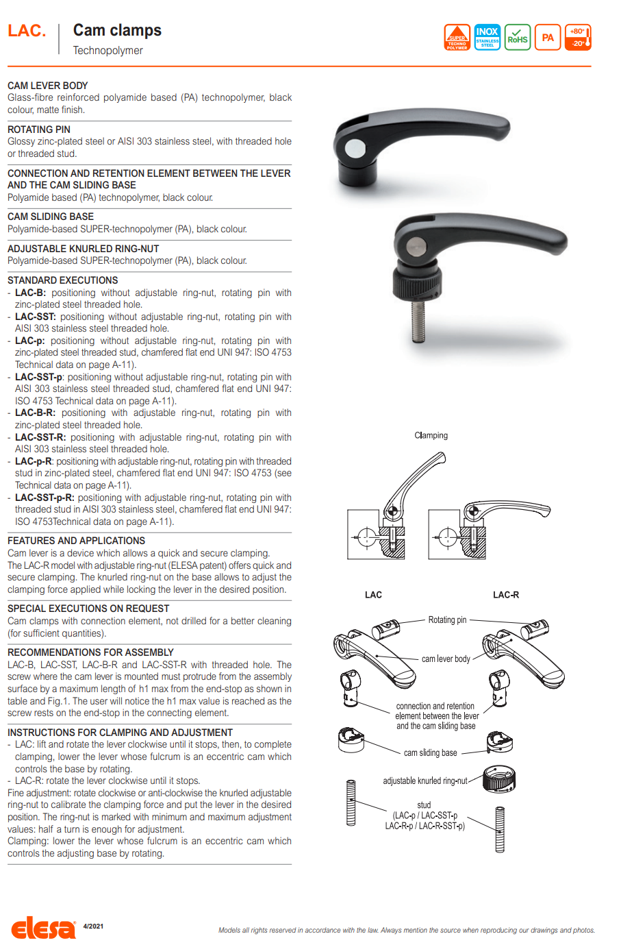 LAC-SST-p 캠 레버 (AISI303 스테인리스 회전핀, 나사산 스터드)