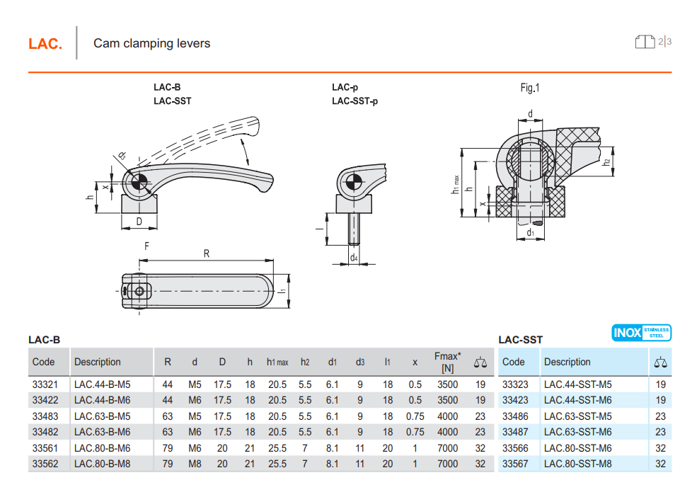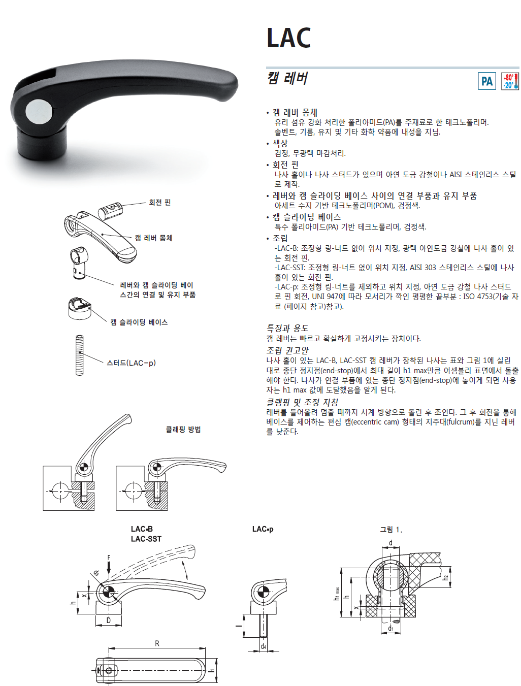 LAC-B 캠 레버 (아연도금 스틸 회전핀, 나사산 홀)