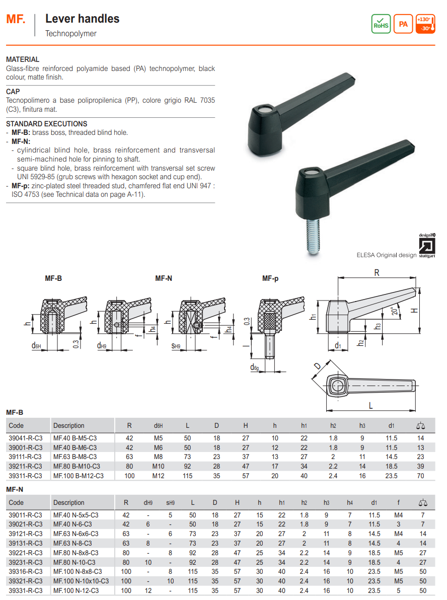 MF-N 레버 핸들 (원통형 혹은 사각형 홀) - 10개입