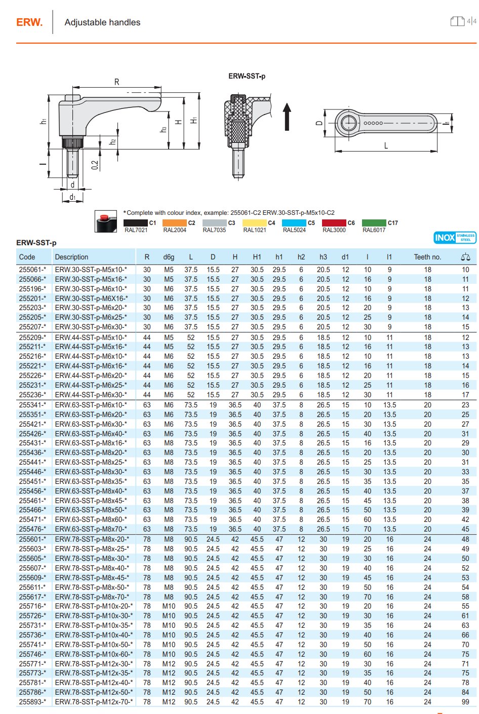 ERW-SST-p 조절 레버 (스테인리스 나사산 스터드) - 10개입