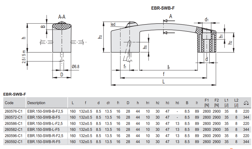 EBR-SWB-R-F5 손잡이 (안전장치, 전기스위치, 우측 커넥터, 5m케이블포함)