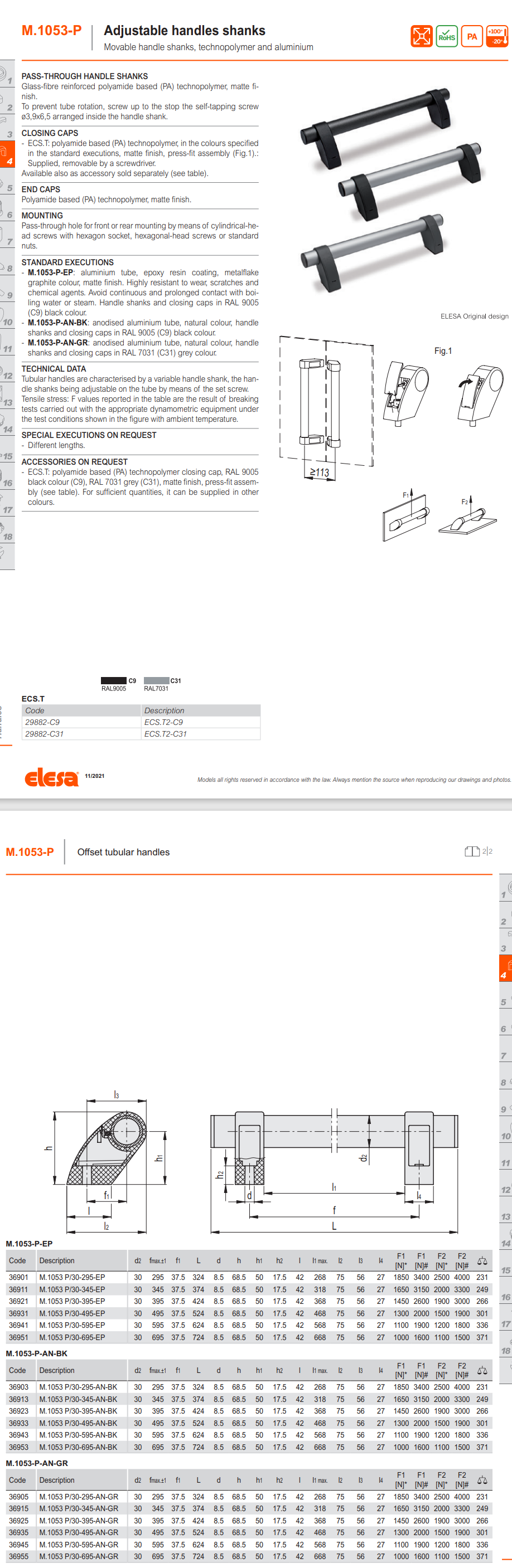 M.1053-P-AN-GR 핸들 (아노다이징 알루미늄튜브, 회색)