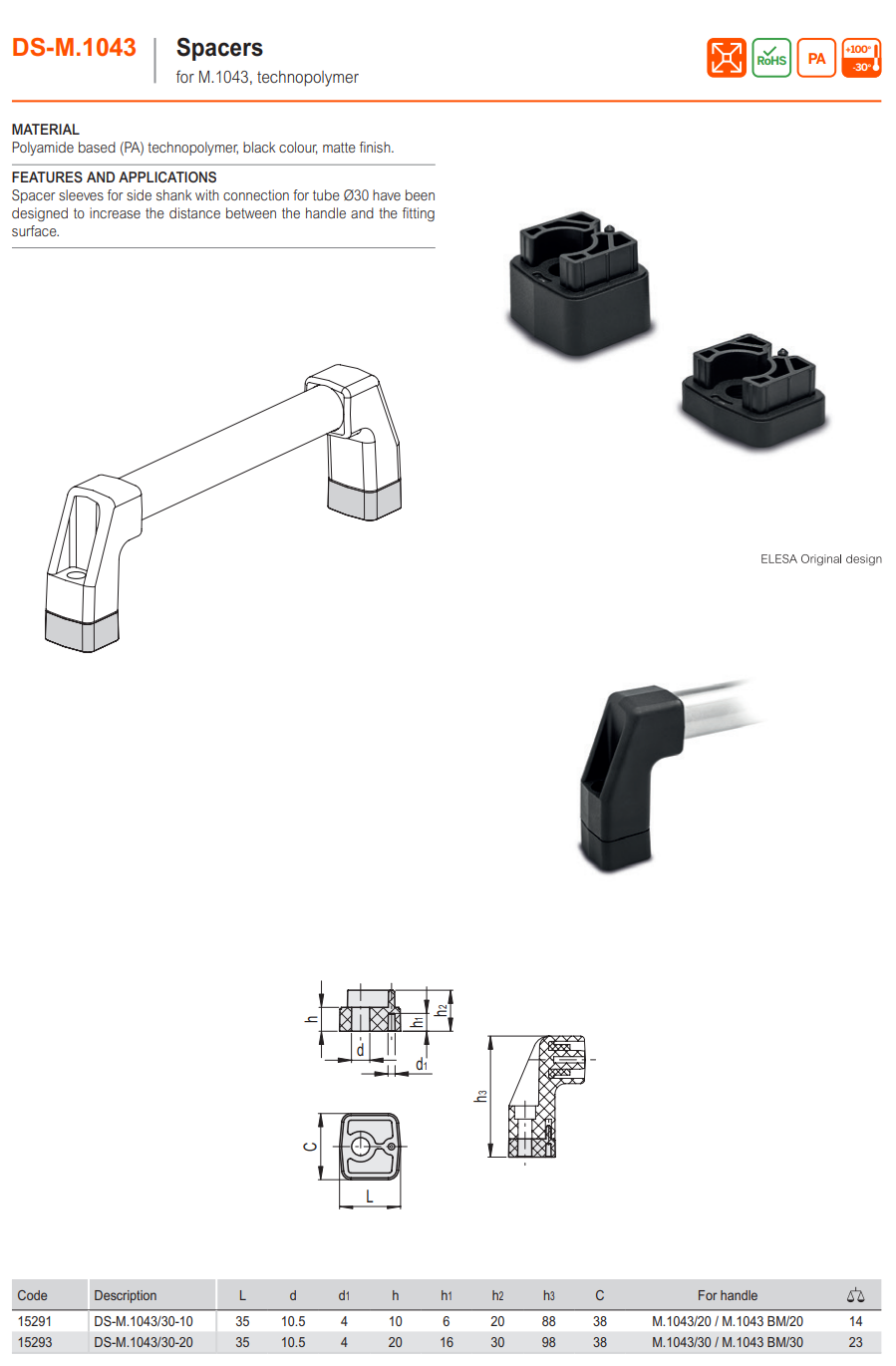 DS-M.1043 슬리브 (M.1043 핸들 용, 테크노폴리머)
