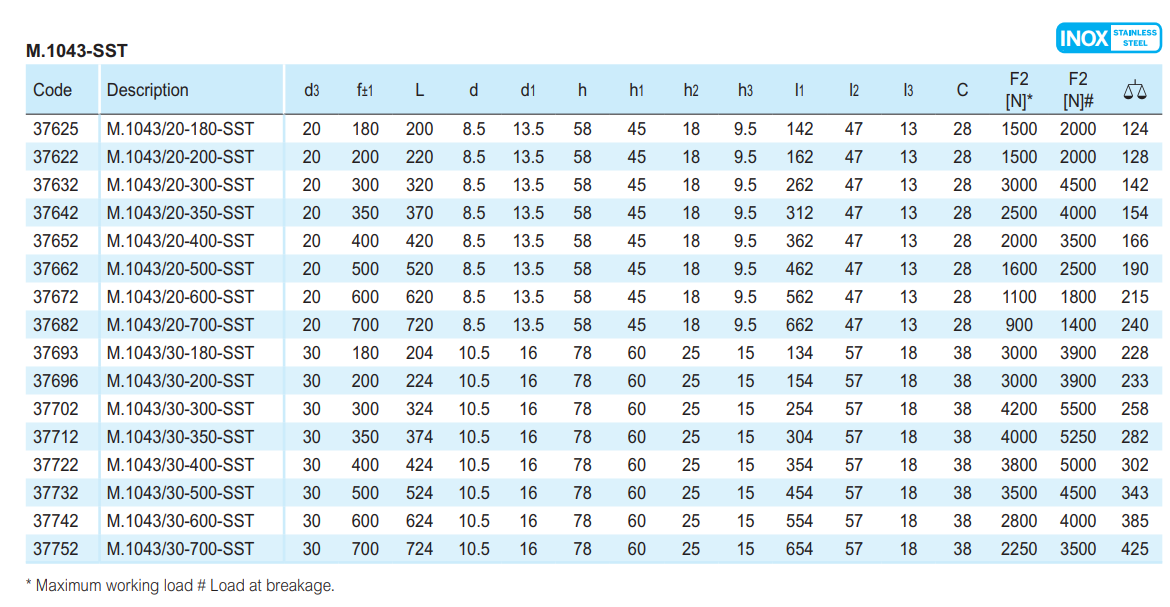M.1043-SST: AISI 304 스테인리스 스틸 튜브.