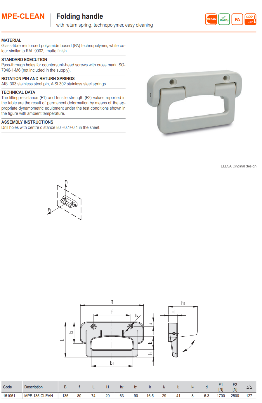 MPE-CLEAN 매립형 접이식 손잡이 (리턴스프링타입, 방진제품, 테크노폴리머)
