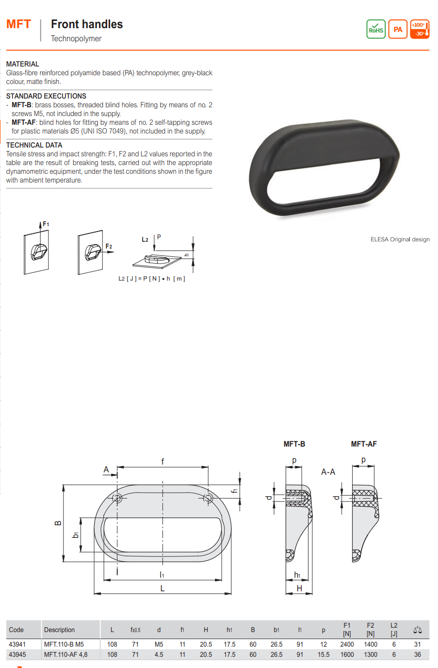 MFT 손잡이 (전면 설치형, 테크노폴리머) / 10개입