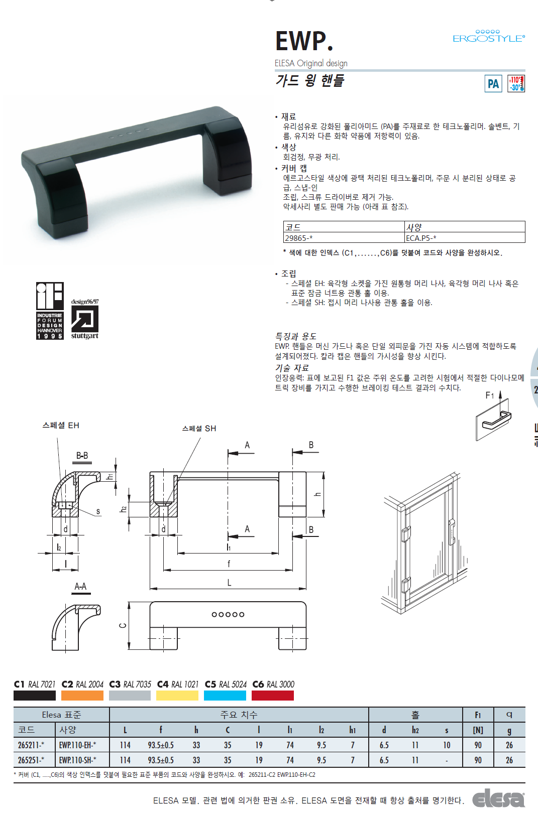 EWP. 손잡이 (선반형, 테크노폴리머) / 10개입