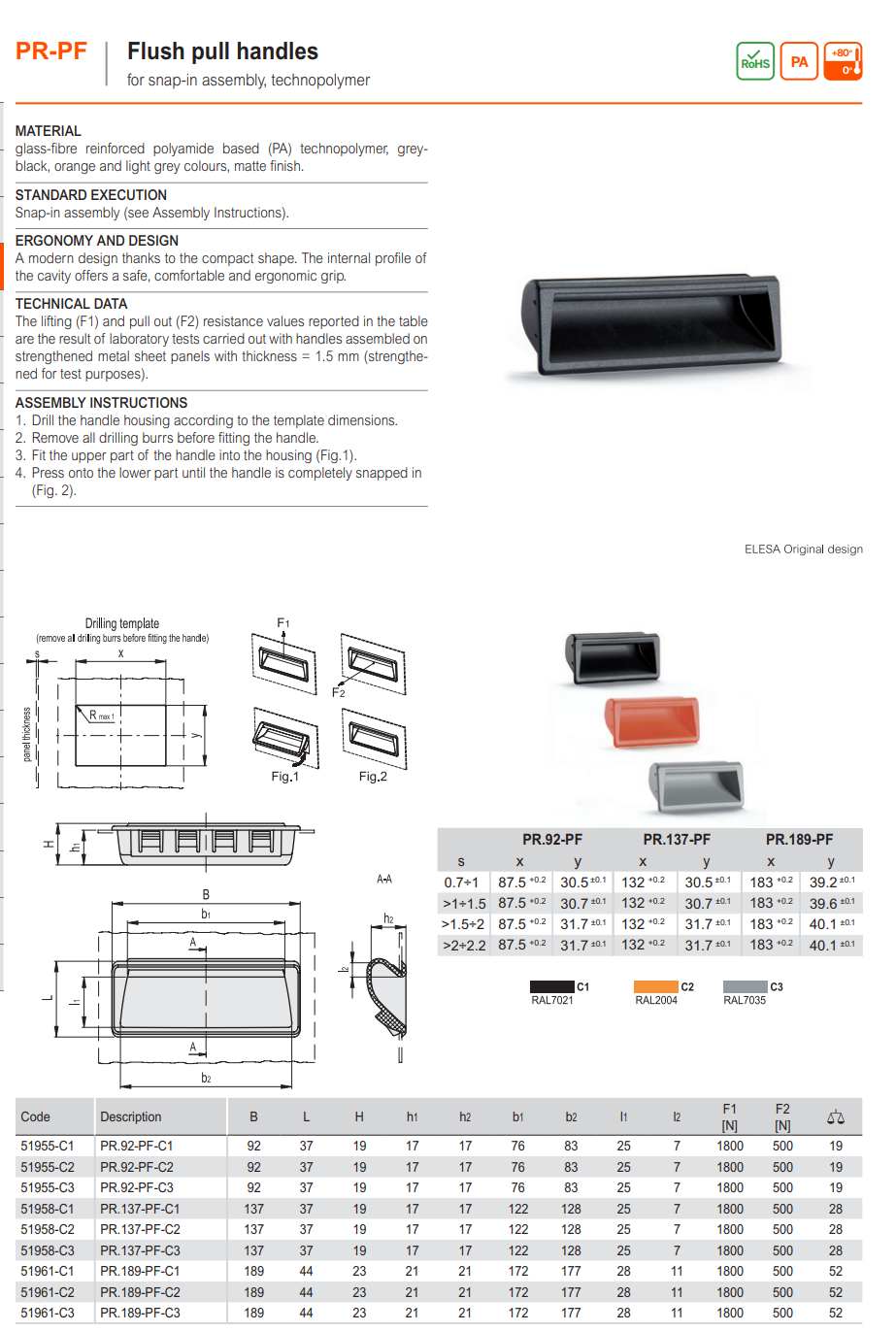 PR-PF 매립손잡이 (삽입형, 테크노폴리머) / 5개입