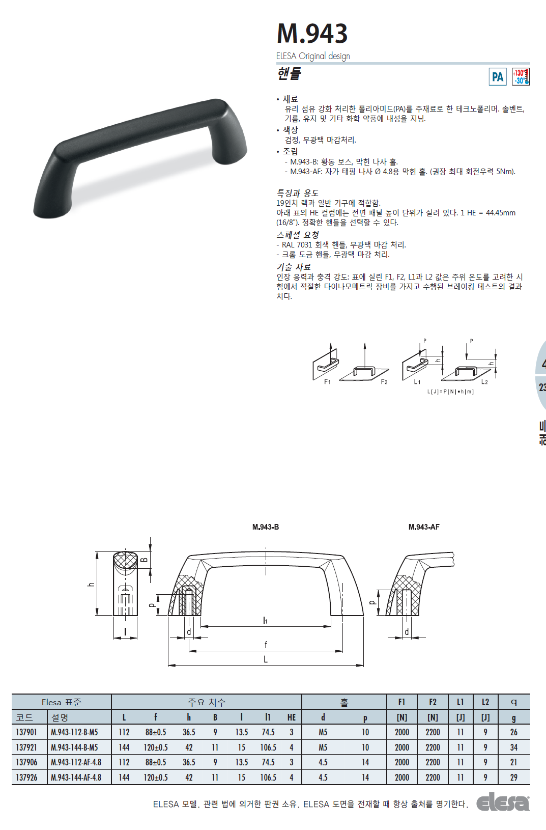 M.943 브릿지 핸들 (테크노폴리머) / 5개입
