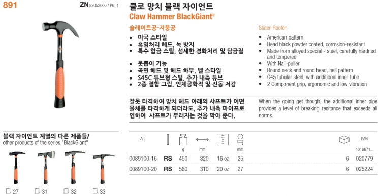 [블랙 자이언트] 클로 망치 0089100-16