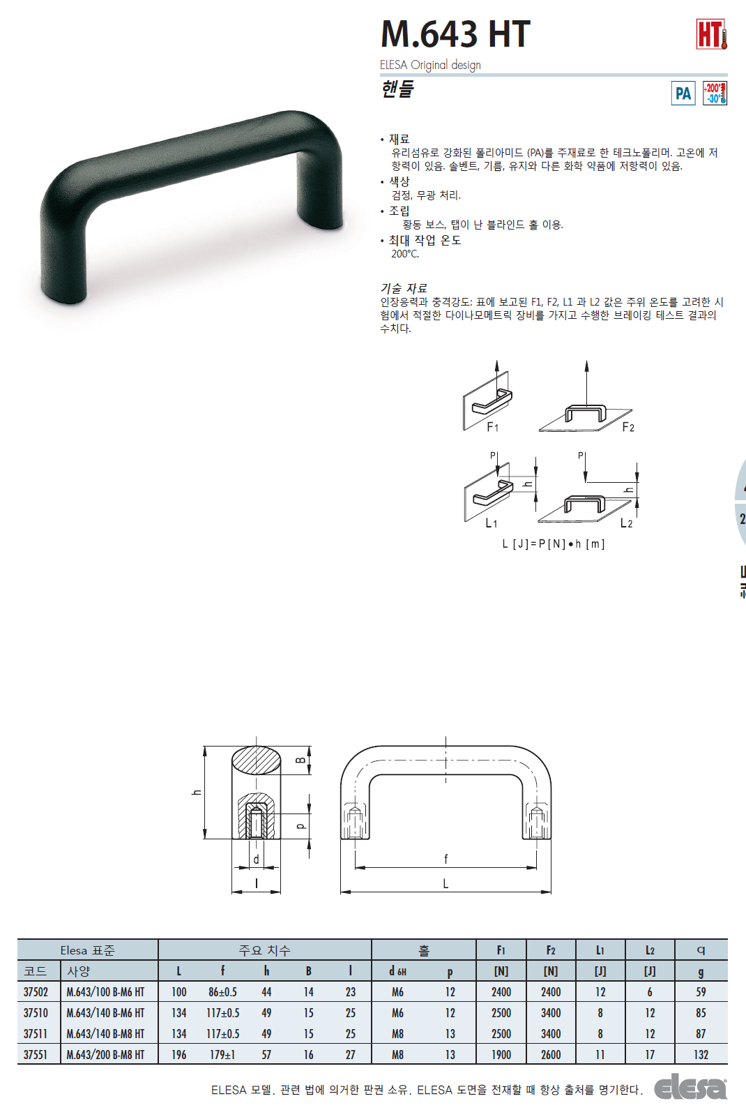 M.643 HT 브릿지 핸들 (테크노폴리머, 고온에 사용 가능) / 5개입