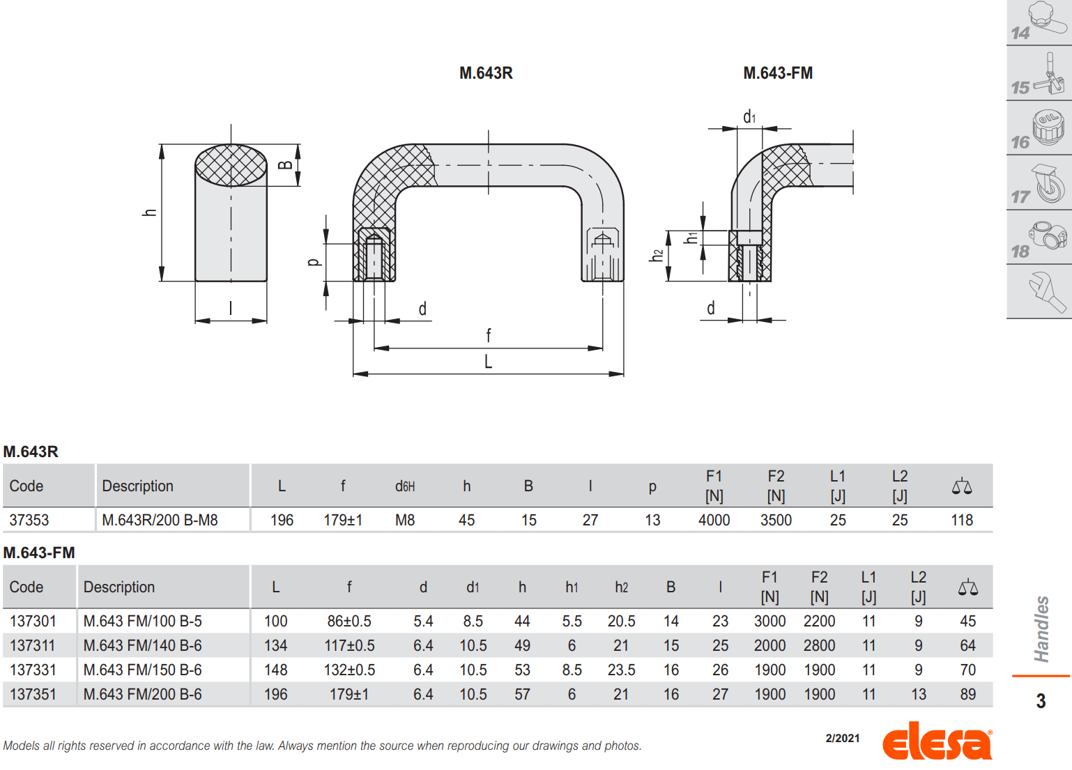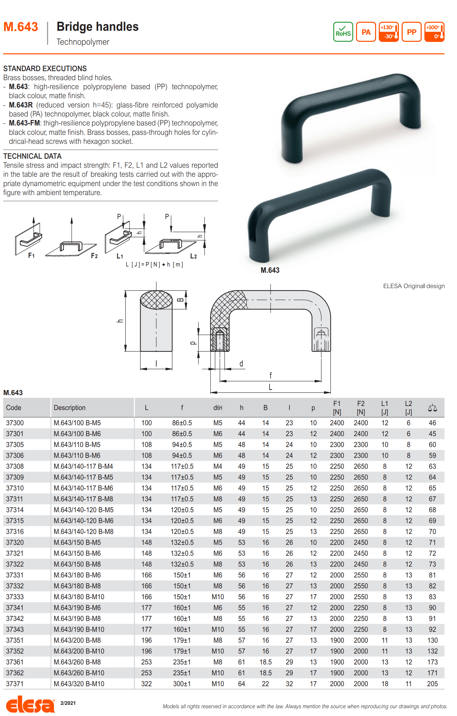 M.643 브릿지 핸들 (테크노폴리머, 나사산) / 5개입