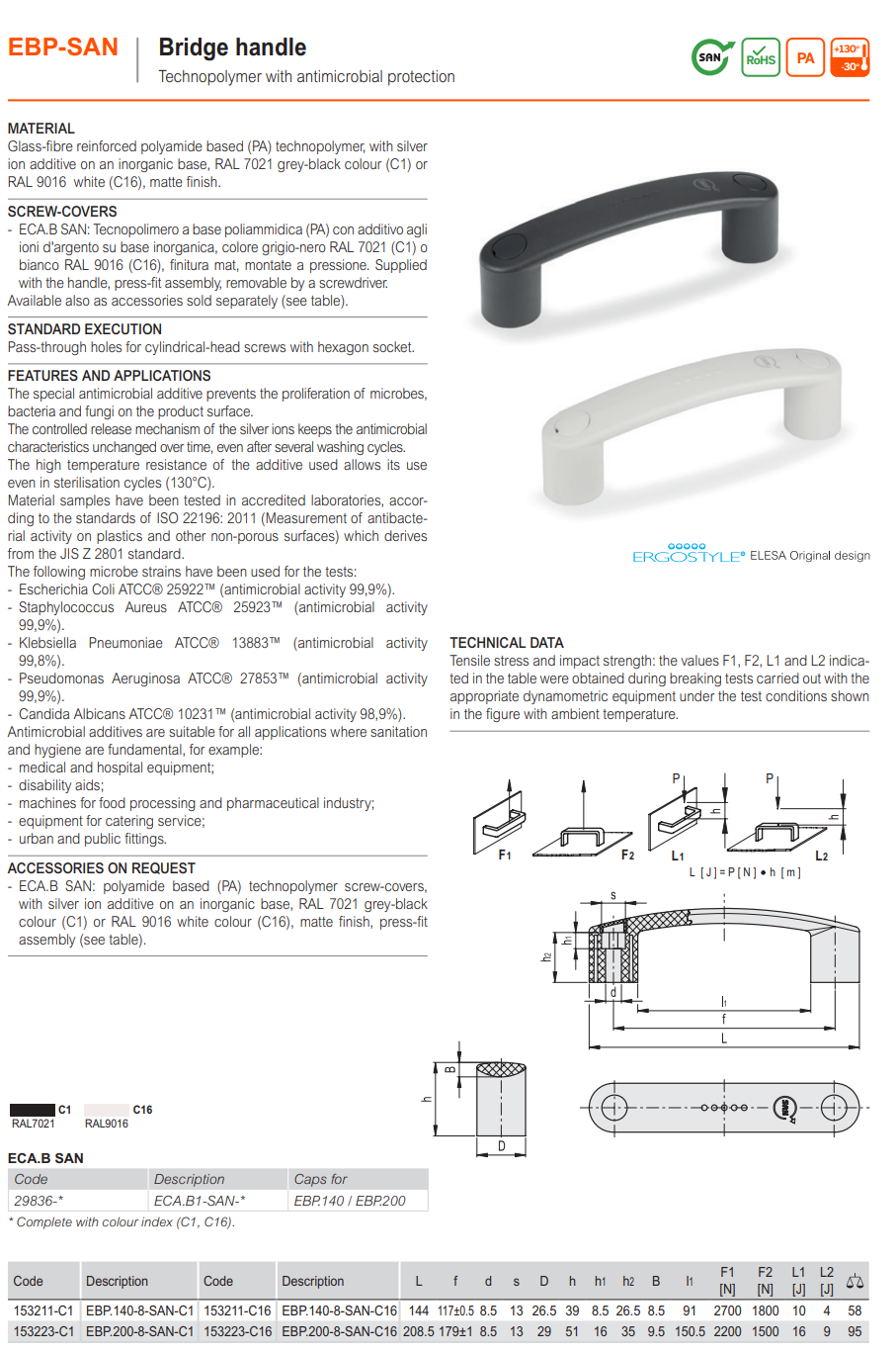 ECA.B SAN 브릿지 핸들 (테크노폴리머, 항균제품, 인체공학 디자인) / 10개입