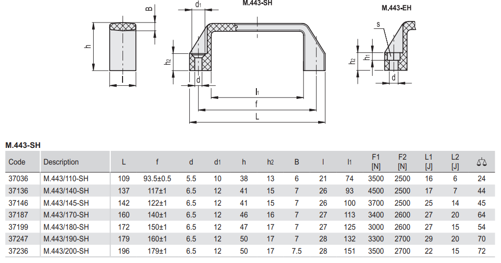 M.443-SH 브릿지 핸들 (폴리아미드) / 10개입