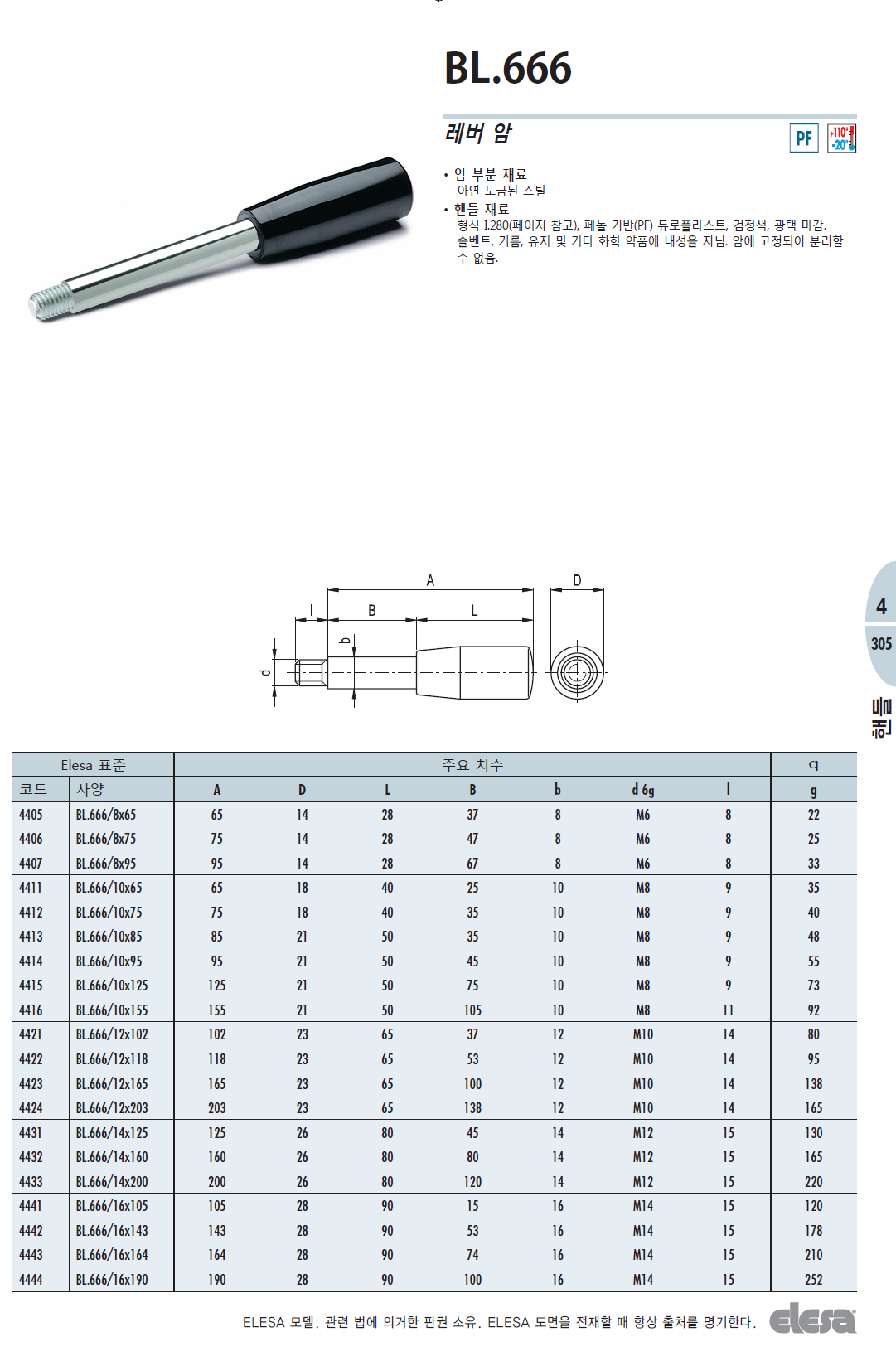 BL.666 레버 핸들(기어봉, 듀로플라스틱)