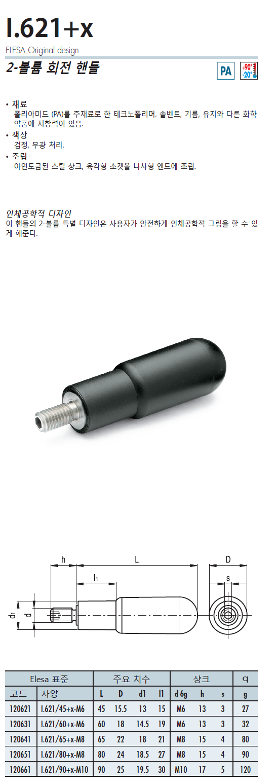 I.621+x 회전 핸들 (테크노폴리머, 스틸 숫나사)