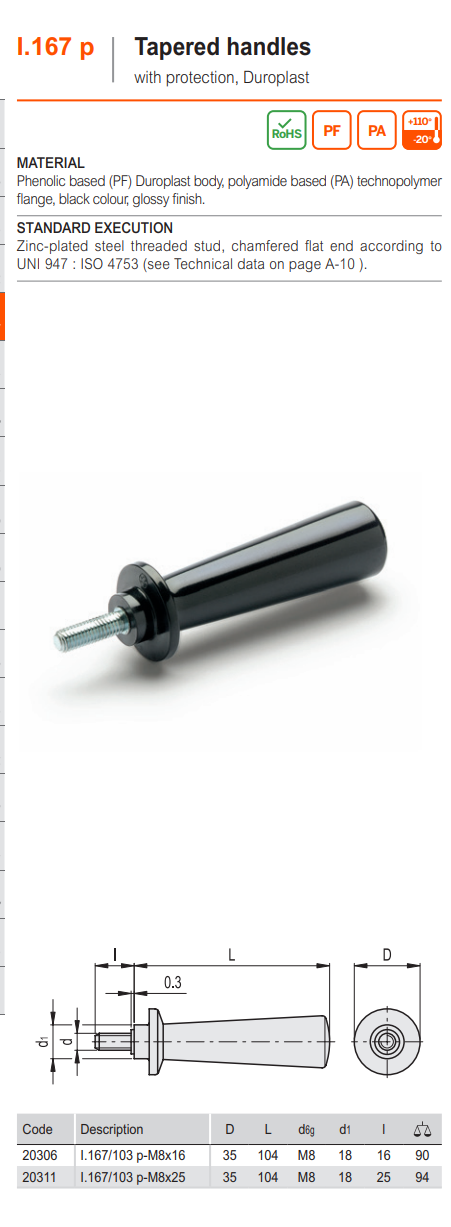 I.167 p 고정 핸들 (듀로플라스틱, 숫나사)