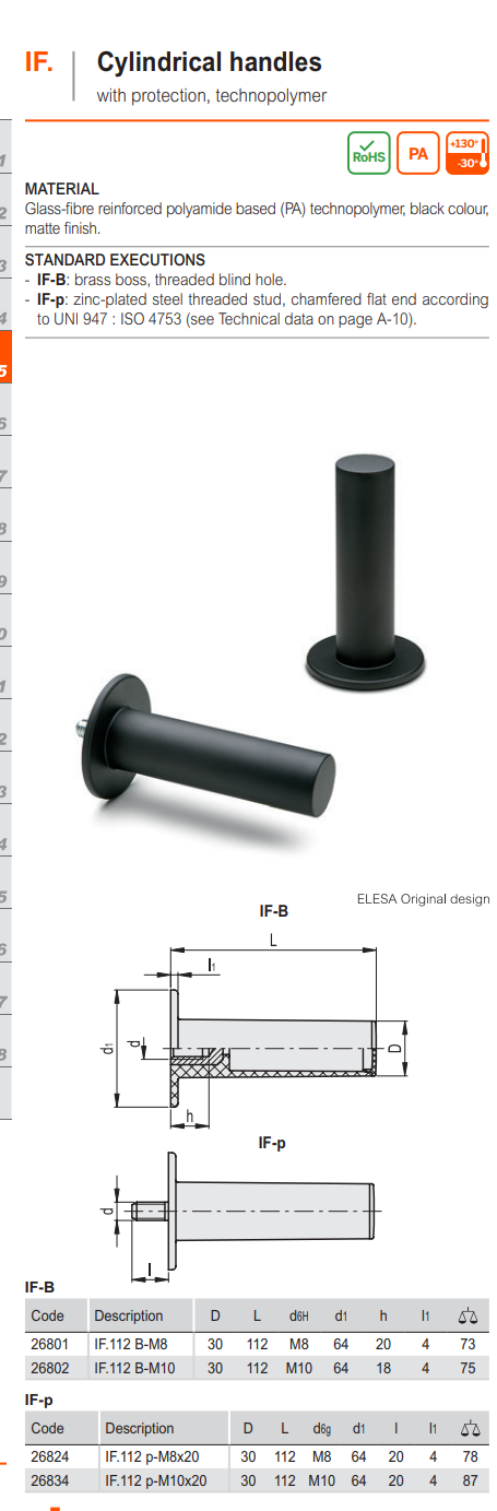 IF. 고정 핸들 (테크노폴리머, 원통형)