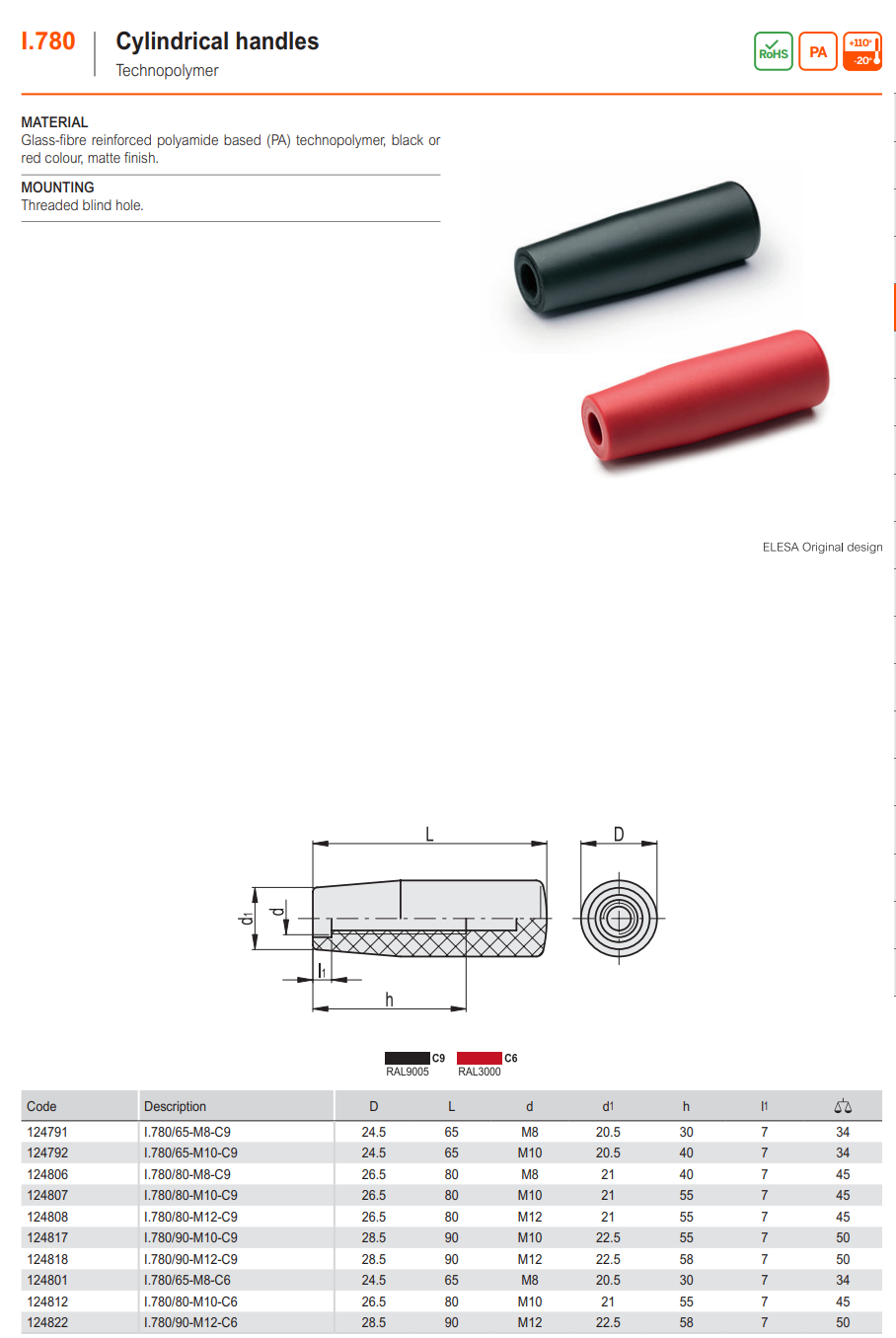I.780 고정 핸들 (테크노폴리머, 원통형)
