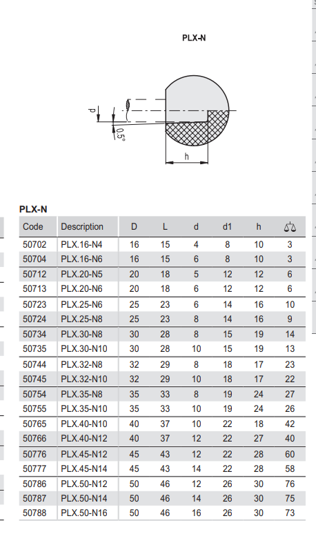 PLX-N 볼 노브 (듀로플라스틱, 관통홀)