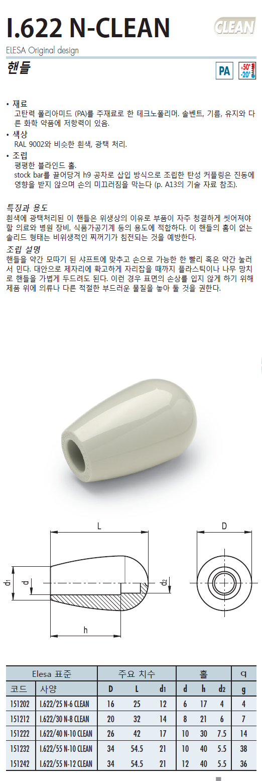 I.622 N-CLEAN 고정 핸들 (테크노폴리머, 방진제품)