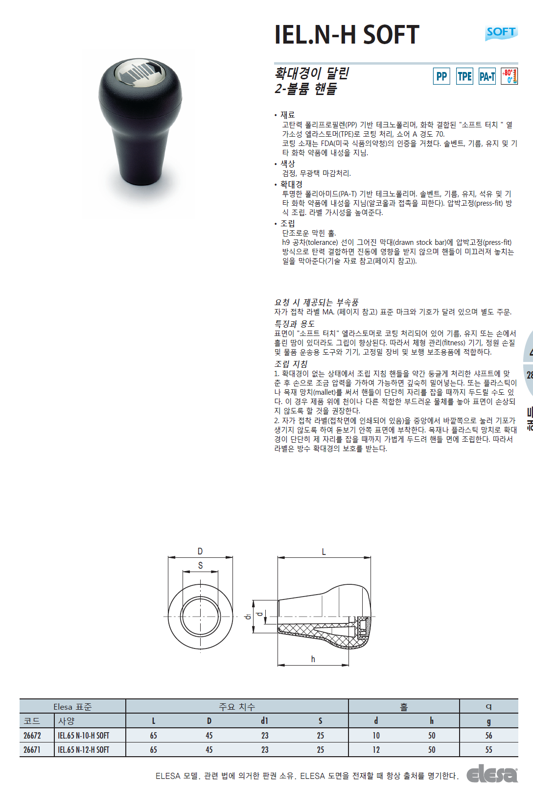 IEL.N-H SOFT 고정 핸들 (소프트 테크노폴리머, 심볼마크)