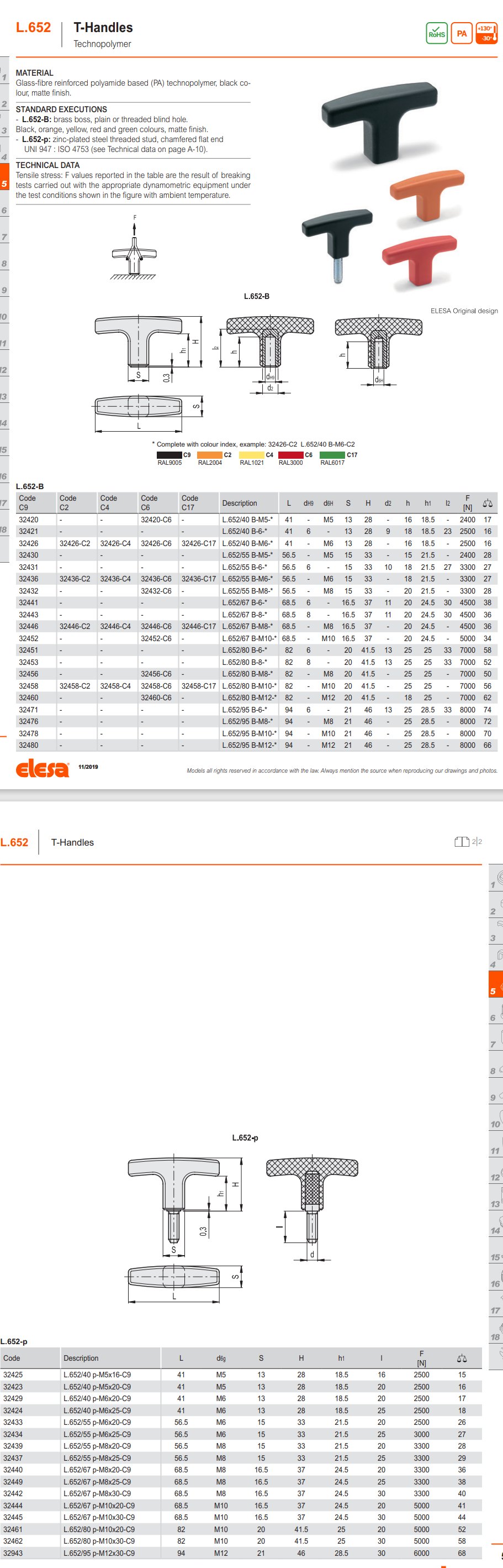 L.652-B T핸들 (암나사 및 관통홀)
